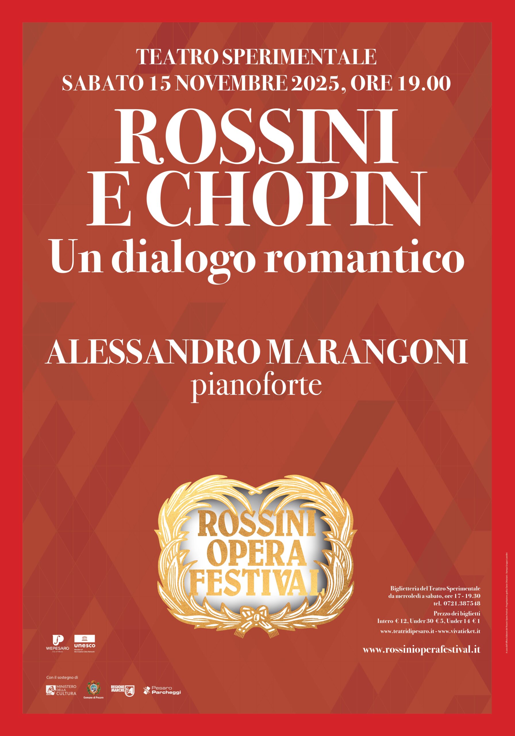 Nell’ambito delle celebrazioni rossiniane il ROF ha in programma il concerto: ‘Rossini e Chopin – Un dialogo romantico’ cui protagonista sarà il pianista Alessandro Marangoni.